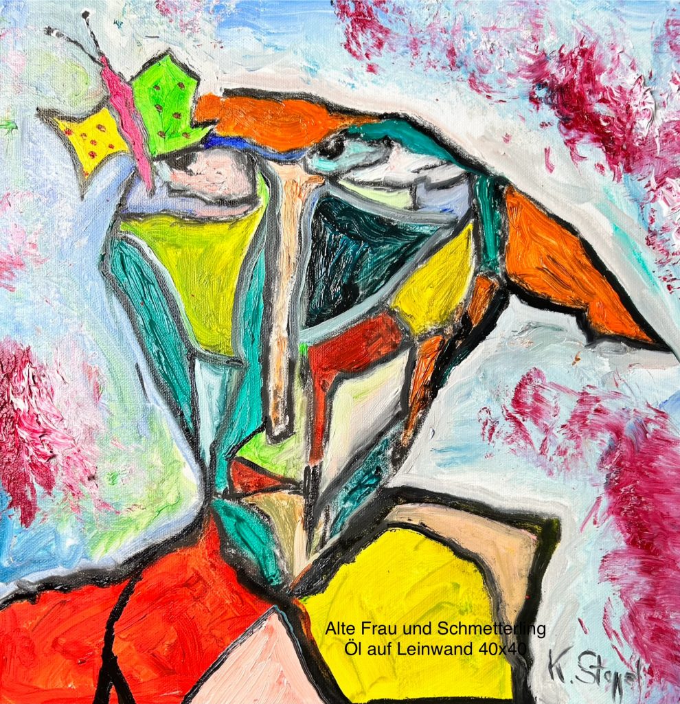 Alte Frau und Schmetterling
